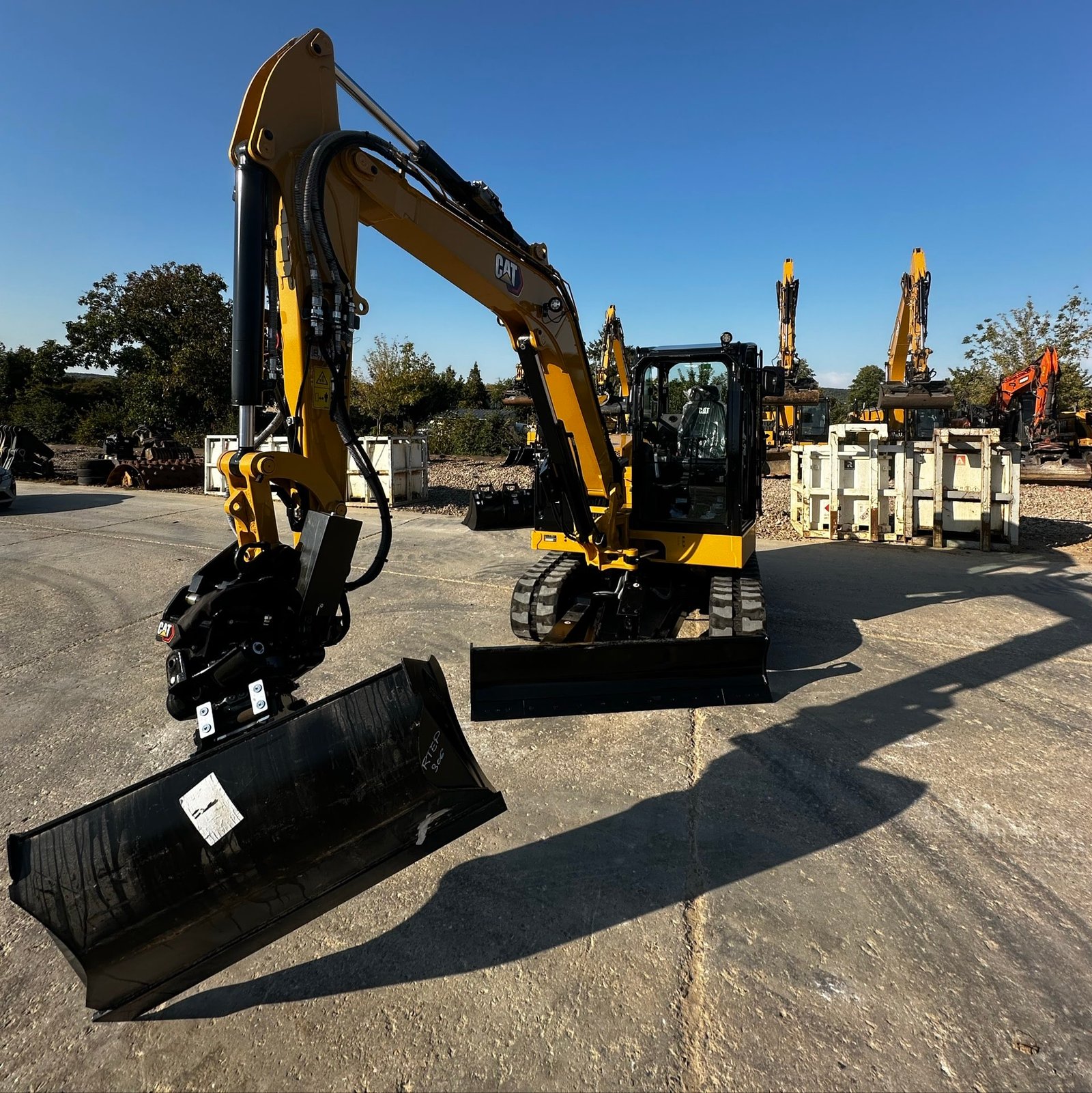 Cat 306CR Ă©quipĂ©e d’une lame orientable et d’un DRS